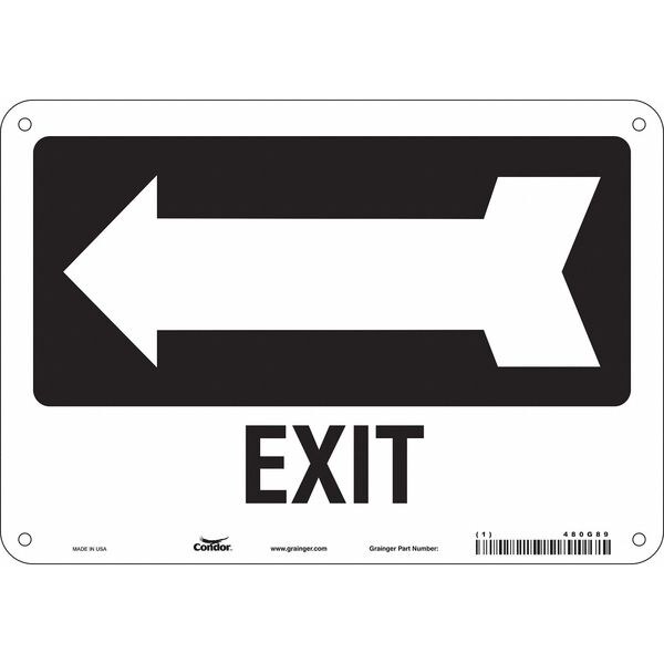 Exit Sign, Aluminum, 10" W, 7" H, Exit, White