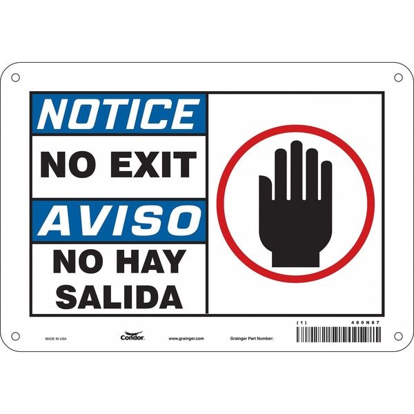 Safety Sign, Vertical Rectangle, Number of Printed Sides 1, English, Spanish, Sign Format Traditional OSHA, Sign Legend No Exit/No Hay Salida, Sign Legend Background Color White, Sign Legend Style Symbol and Text