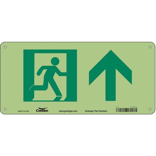Safety Sign, Vertical Rectangle, Number of Printed Sides 1, No Text, Sign Format Other Format, Sign Legend Emergency Exit (Up Arrow), Sign Legend Background Color White, Sign Legend Style Symbol