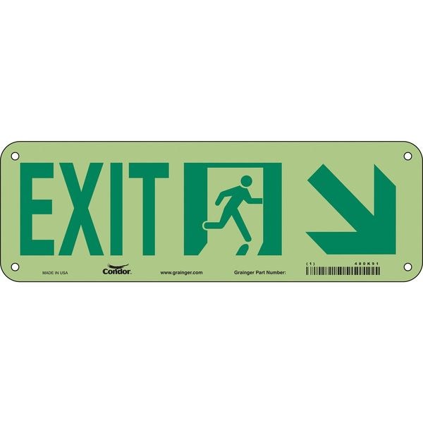 Safety Sign, Vertical Rectangle, Number of Printed Sides 1, English, Sign Format Other Format, Sign Legend Exit, Sign Legend Background Color White, Sign Legend Style Symbol and Text