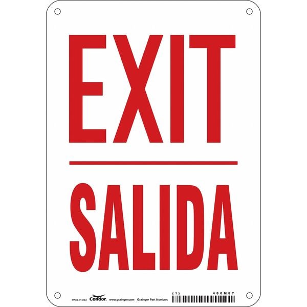 Safety Sign, Horizontal Rectangle, Number of Printed Sides 1, English, Spanish, Sign Legend Exit/Salida, Sign Legend Background Color White, Sign Legend Style Text