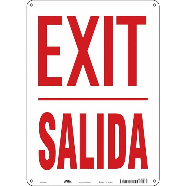 Safety Sign, Vertical Rectangle, Number of Printed Sides 1, English, Spanish, Sign Legend Exit/Salida, Sign Legend Background Color White, Sign Legend Style Text