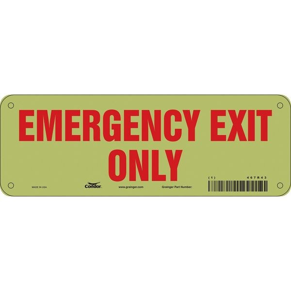 Exit Sign, Plastic, 10" W, 3-1/2" H, Emergency Exit Only, White