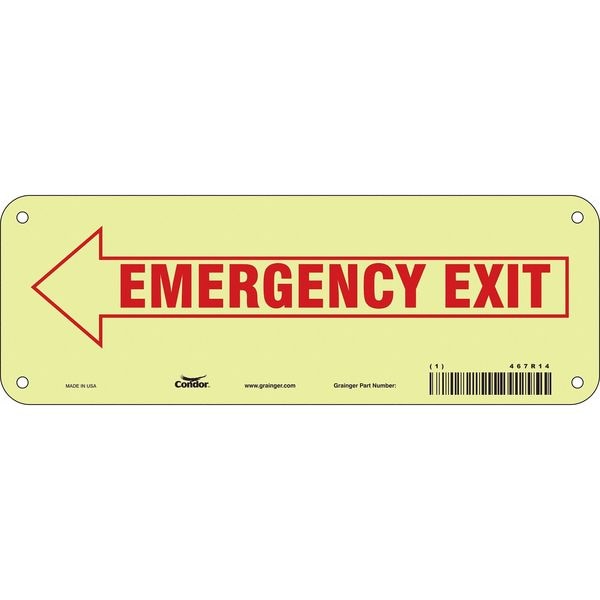 Exit Sign, Plastic, 10" W, 3-1/2" H, EMERGENCY EXIT W/SYMBOL, White