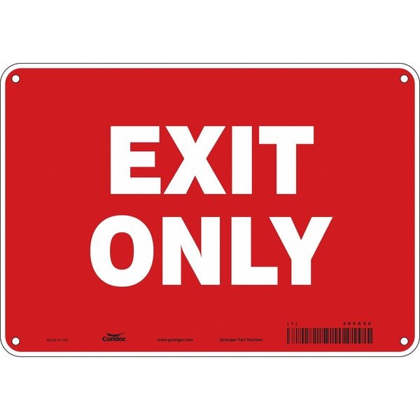Exit Sign, Plastic, 10" W, 7" H, Exit Only, Red