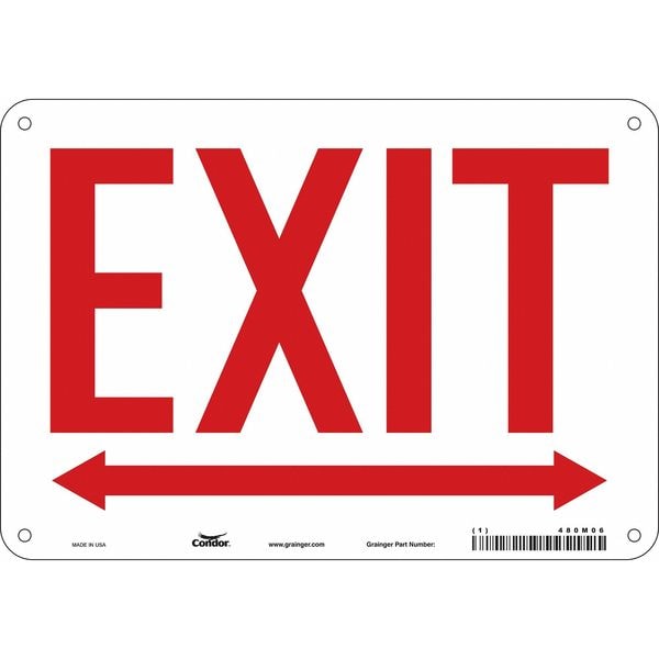 Exit Sign, Plastic, 10" W, 7" H, Exit, White