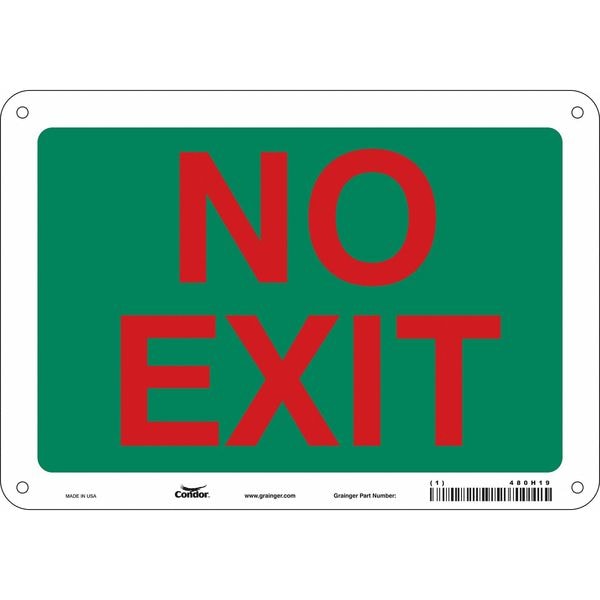 Safety Sign, Vertical Rectangle, Number of Printed Sides 1, English, Sign Legend No Exit, Sign Legend Background Color Green, Sign Legend Style Text