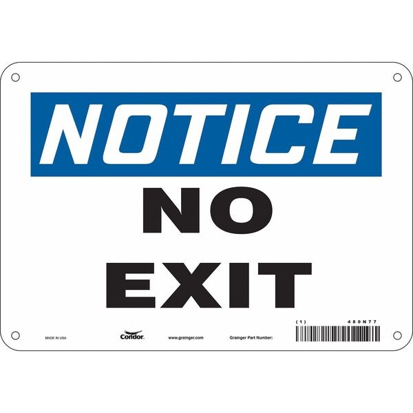 Safety Sign, Vertical Rectangle, Number of Printed Sides 1, English, Sign Format Traditional OSHA, Sign Legend No Exit, Sign Legend Background Color White, Sign Legend Style Text