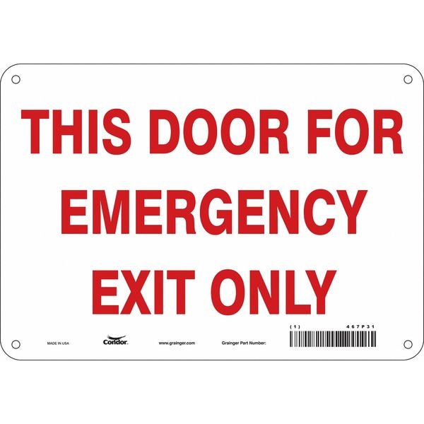 Safety Sign Emergency Exit, Vertical Rectangle, Number of Printed Sides 1, English, Sign Format Other Format, Sign Legend This Door For Emergency Exit Only, Sign Legend Background Color White, Sign Legend Style Text