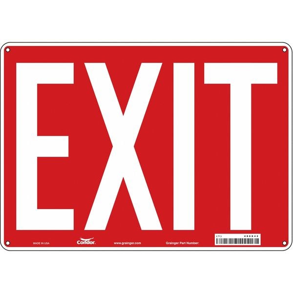 Safety Sign, Horizontal Rectangle, Number of Printed Sides 1, English, Sign Legend Exit, Sign Legend Background Color Red, Sign Legend Style Text