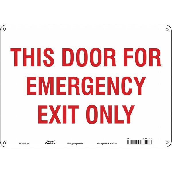 Safety Sign, Horizontal Rectangle, Number of Printed Sides 1, English, Sign Legend This Door For Emergency Exit Only, Sign Legend Background Color White, Sign Legend Style Text