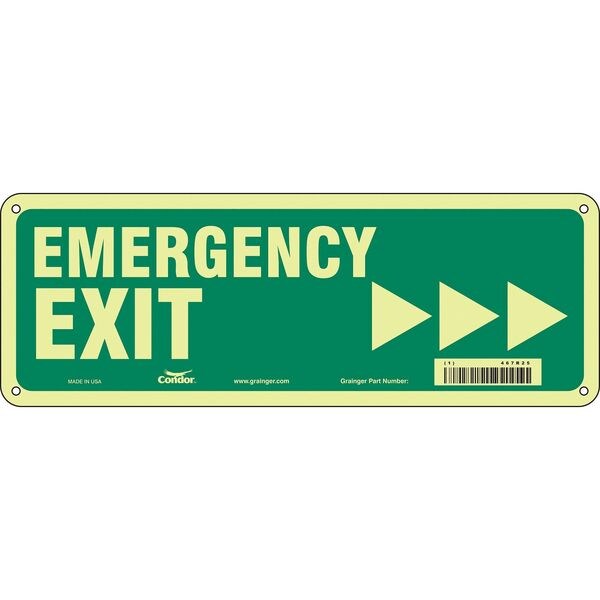 Safety Sign Emergency Exit, Vertical Rectangle, Number of Printed Sides 1, English, Sign Format Other Format, Sign Legend Emergency Exit, Sign Legend Background Color Green, Sign Legend Style Symbol and Text
