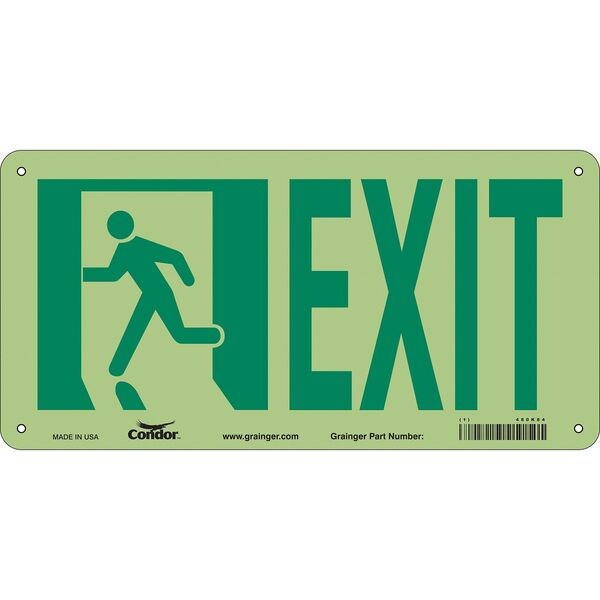 Safety Sign, Vertical Rectangle, Number of Printed Sides 1, English, Sign Format Other Format, Sign Legend Exit, Sign Legend Background Color White, Sign Legend Style Symbol and Text