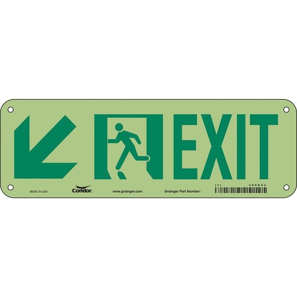 Safety Sign, Vertical Rectangle, Number of Printed Sides 1, English, Sign Format Other Format, Sign Legend Exit, Sign Legend Background Color White, Sign Legend Style Symbol and Text