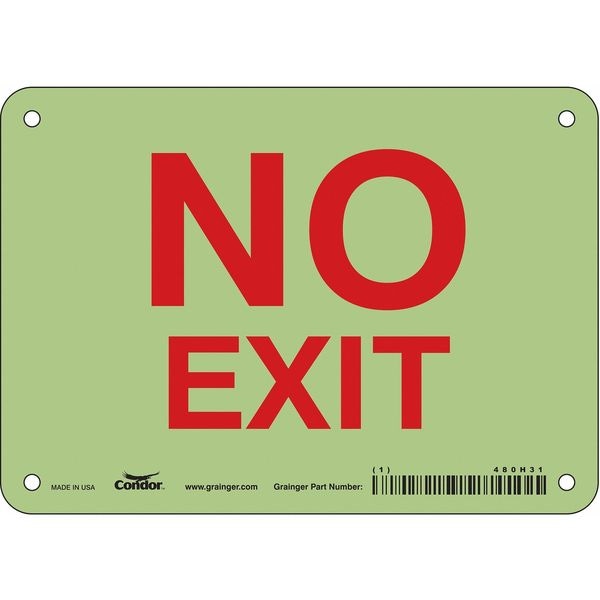 Safety Sign, Horizontal Rectangle, Number of Printed Sides 1, English, Sign Legend No Exit, Sign Legend Background Color White, Sign Legend Style Text
