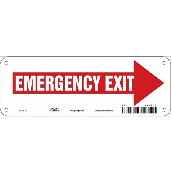 Exit Sign, Vinyl, 10" W, 3-1/2" H, Emergency Exit, Red