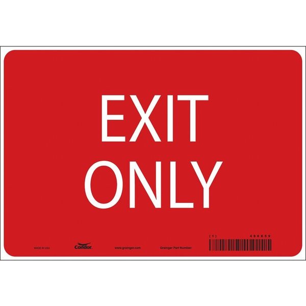 Exit Sign, Vinyl, 10" W, 7" H, Exit Only, Red