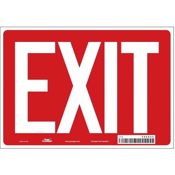Exit Sign, Vinyl, 10" W, 7" H, Exit, Red