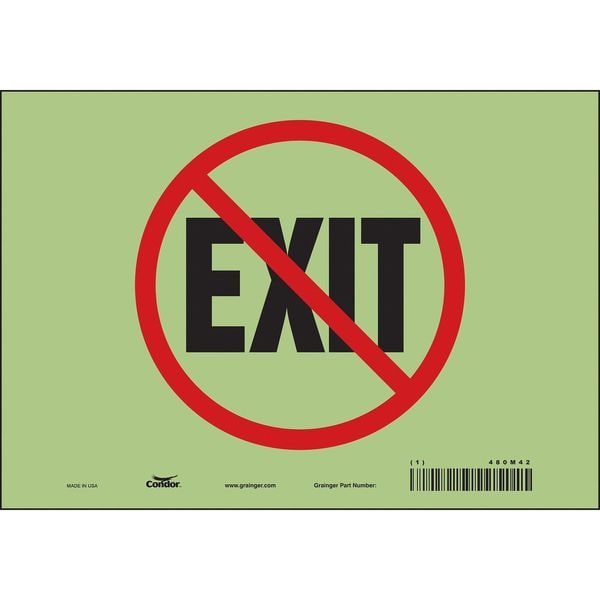 Safety Sign, Vertical Rectangle, Number of Printed Sides 1, English, Sign Format Other Format, Sign Legend (No) Exit, Sign Legend Background Color White, Sign Legend Style Symbol and Text