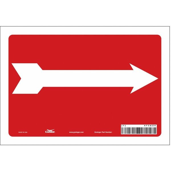 Safety Sign, Vertical Rectangle, Number of Printed Sides 1, No Text, Sign Legend Right Arrow, Sign Legend Background Color Red, Sign Legend Style Symbol