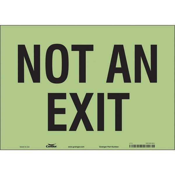 Safety Sign, Horizontal Rectangle, Number of Printed Sides 1, English, Sign Legend Not An Exit, Sign Legend Background Color White, Sign Legend Style Text