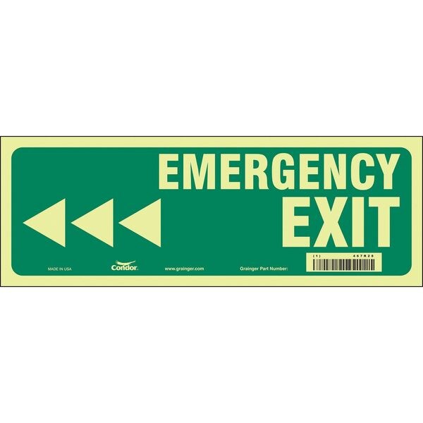 Exit Sign, Vinyl, 14" W, 5" H, EMERGENCY EXIT W/SYMBOL, Green, White