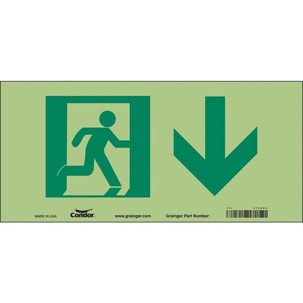 Safety Sign, Vertical Rectangle, Number of Printed Sides 1, No Text, Sign Format Other Format, Sign Legend Emergency Exit (Down Arrow), Sign Legend Background Color White, Sign Legend Style Symbol