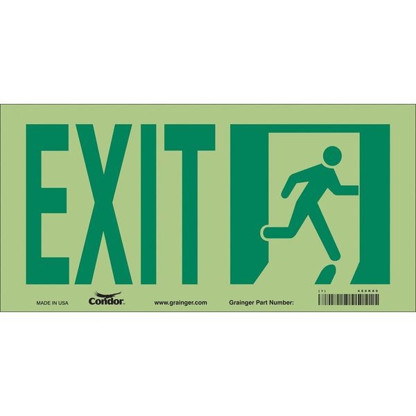 Safety Sign, Vertical Rectangle, Number of Printed Sides 1, English, Sign Format Other Format, Sign Legend Exit, Sign Legend Background Color White, Sign Legend Style Symbol and Text