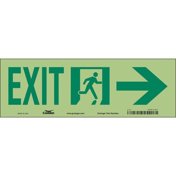 Safety Sign, Vertical Rectangle, Number of Printed Sides 1, English, Sign Format Other Format, Sign Legend Exit (Right Arrow), Sign Legend Background Color White, Sign Legend Style Symbol and Text