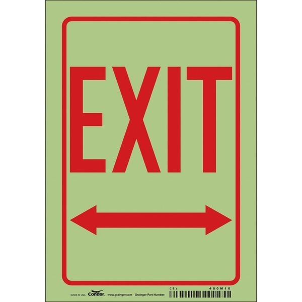 Safety Sign, Horizontal Rectangle, Number of Printed Sides 1, English, Sign Format Other Format, Sign Legend Exit, Sign Legend Background Color White, Sign Legend Style Symbol and Text