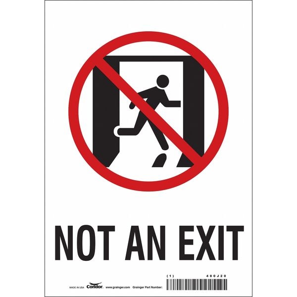 Safety Sign, Horizontal Rectangle, Number of Printed Sides 1, English, Sign Legend Not An Exit, Sign Legend Background Color White, Sign Legend Style Symbol and Text