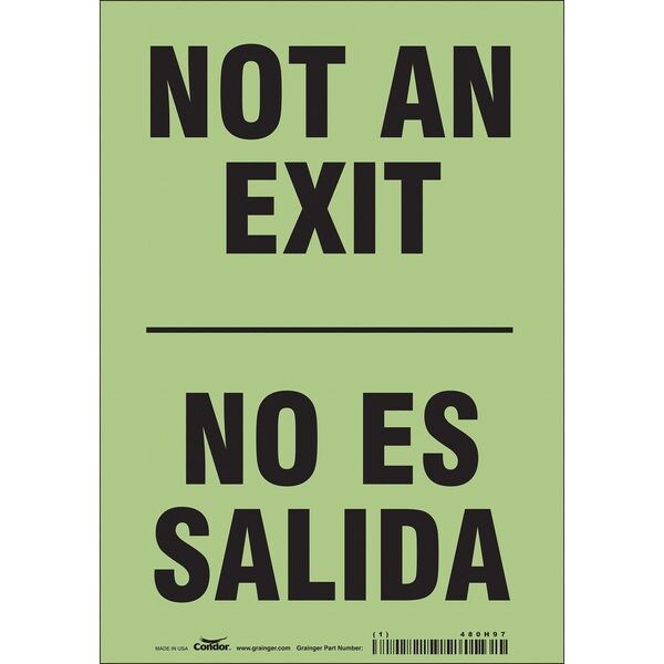 Safety Sign, Horizontal Rectangle, Number of Printed Sides 1, English, Spanish, Sign Format Other Format, Sign Legend Not An Exit/No Es Salida, Sign Legend Background Color White, Sign Legend Style Text