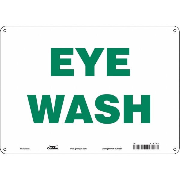 Safety Sign, Horizontal Rectangle, Number of Printed Sides 1, English, Sign Legend Eye Wash, Sign Legend Background Color White, Sign Legend Style Text