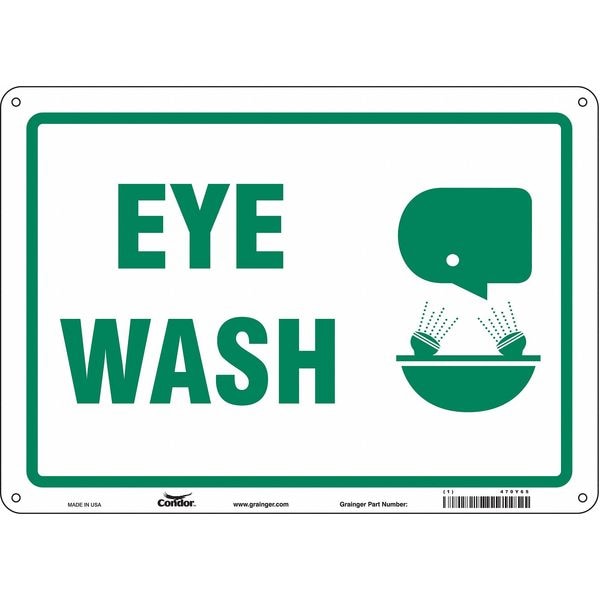 Safety Sign, Horizontal Rectangle, Number of Printed Sides 1, English, Sign Legend Eye Wash, Sign Legend Background Color White, Sign Legend Style Symbol and Text