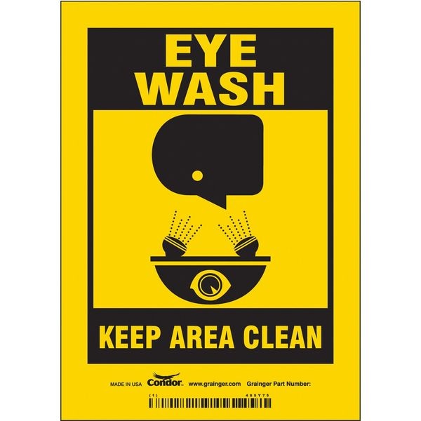EYE WASH KEEP AREA CLEAR!, 5 in W x 7 in H, Vertical Rectangle, Vinyl, 485Y75
