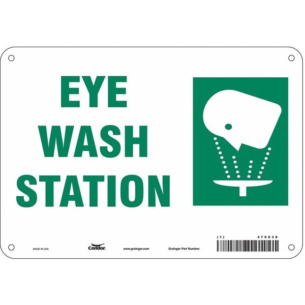Safety Sign, Vertical Rectangle, Number of Printed Sides 1, English, Sign Legend Eye Wash Station, Sign Legend Background Color Green; White, Sign Legend Style Symbol and Text