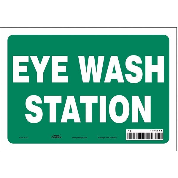 Eye Wash Station, 10 in W x 7 in H, Vertical Rectangle, Vinyl, 470Z32