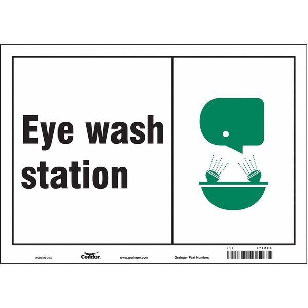 Safety Sign, Horizontal Rectangle, Number of Printed Sides 1, English, Sign Format Other Format, Sign Legend Eye Wash Station, Sign Legend Background Color White, Sign Legend Style Symbol and Text