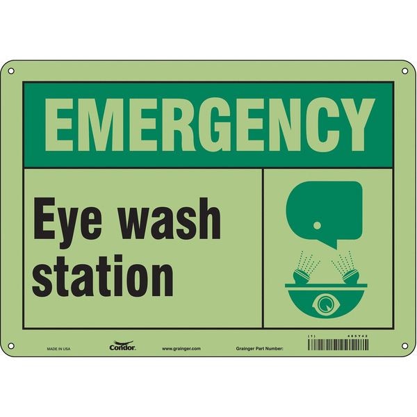 First Aid Sign, Horizontal Rectangle, Number of Printed Sides 1, English, Sign Format Other Format, Sign Legend Emergency Eye Wash Station, Sign Legend Background Color Green, White, Sign Legend Style Symbol and Text
