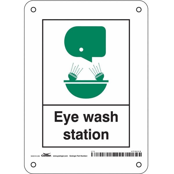 Safety Sign, Vertical Rectangle, Number of Printed Sides 1, English, Sign Format Other Format, Sign Legend Eye Wash Station, Sign Legend Background Color White, Sign Legend Style Symbol and Text