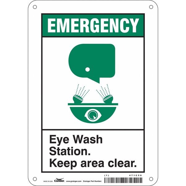 Eye Wash Station. Keep Area Clear., Polyethylene, 10 in x 7 in, Mounting Holes