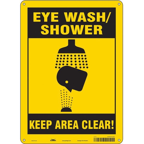 EYE WASH/SHOWER KEEP AREA CLEAR!, 10 in W x 14 in H, Vertical Rectangle, Polyethylene, 485Y20