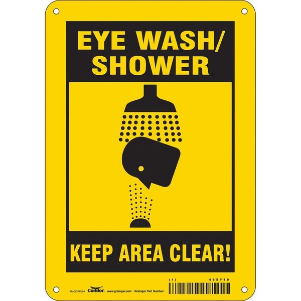 EYE WASH/SHOWER KEEP AREA CLEAR!, 7 in W x 10 in H, Horizontal Rectangle, Polyethylene, 485Y19
