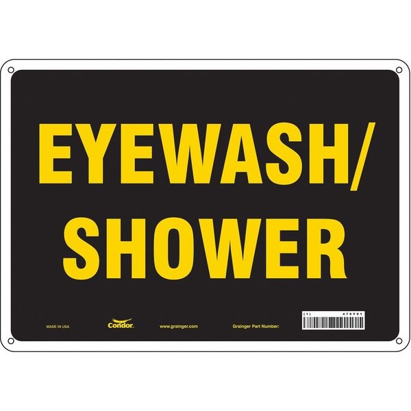 Safety Sign, Horizontal Rectangle, Number of Printed Sides 1, English, Sign Format Other Format, Sign Legend Eyewash / Shower, Sign Legend Background Color Black, Sign Legend Style Text