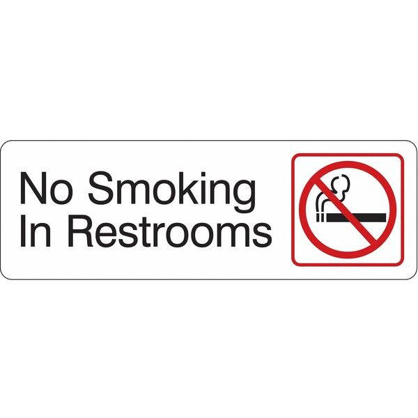 Facility Sign, Horizontal Rectangle, Number of Printed Sides 1, English, Sign Format Other Format, Sign Legend No Smoking In Restrooms, Sign Legend Background Color White, Sign Legend Style Symbol and Text