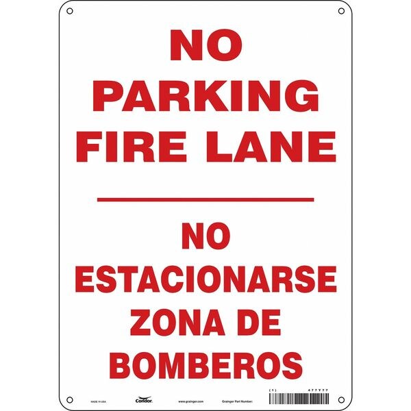 Fire Lane, Zone & Equipment No Parking Sign, Height 14 in, Width 10 in, Sign Material Polyethylene, Sign Mounting Style Mounting Holes, Printed Language English, Spanish, Sign Shape Vertical Rectangle