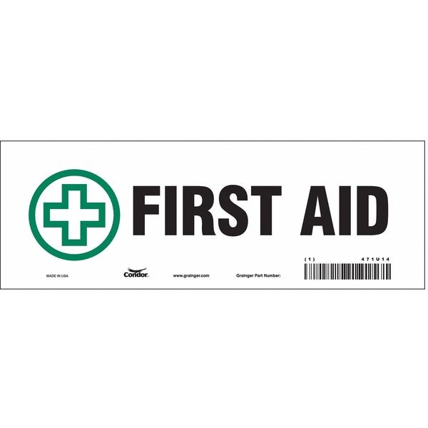 First Aid, 10 in W x 3 1/2 in H, Vertical Rectangle, Vinyl, 471U14