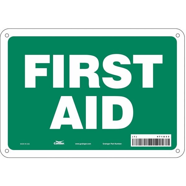 First Aid, 10 in W x 7 in H, Vertical Rectangle, Aluminum, 471U33