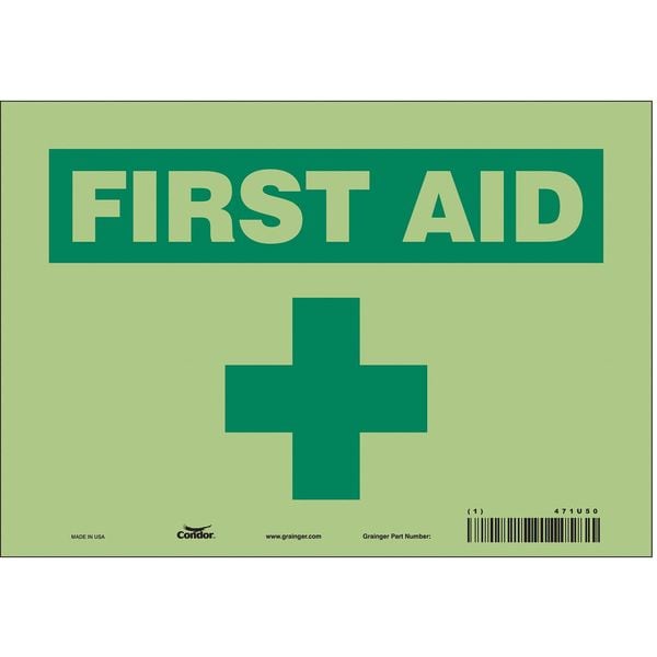 First Aid, 10 in W x 7 in H, Vertical Rectangle, Glow Vinyl, 471U50