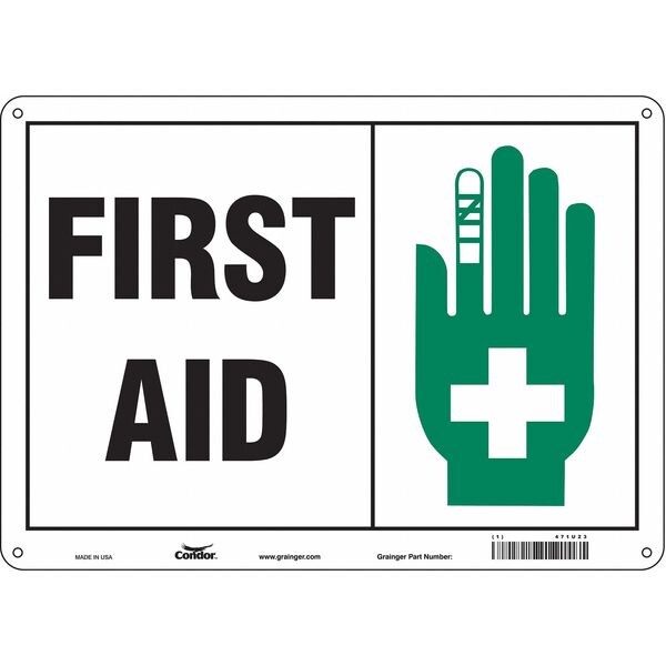 First Aid, 14 in W x 10 in H, Horizontal Rectangle, Aluminum, 471U23